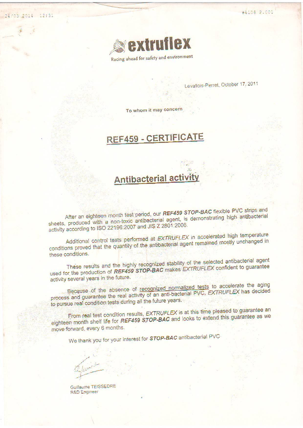 Anti Bakteriyel sertifikası