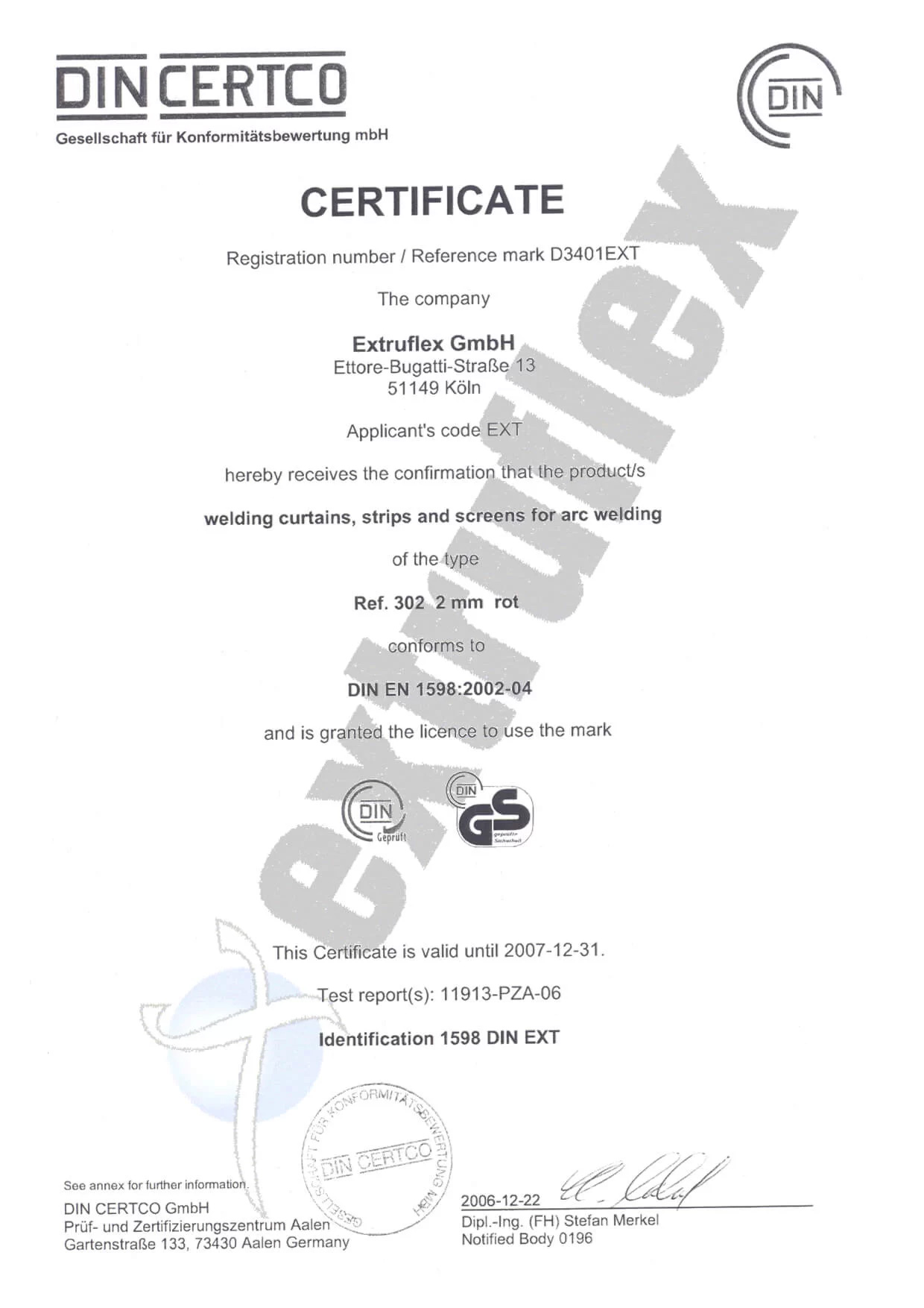 PVC KAYNAK PERDESİ SERTİFİKASI