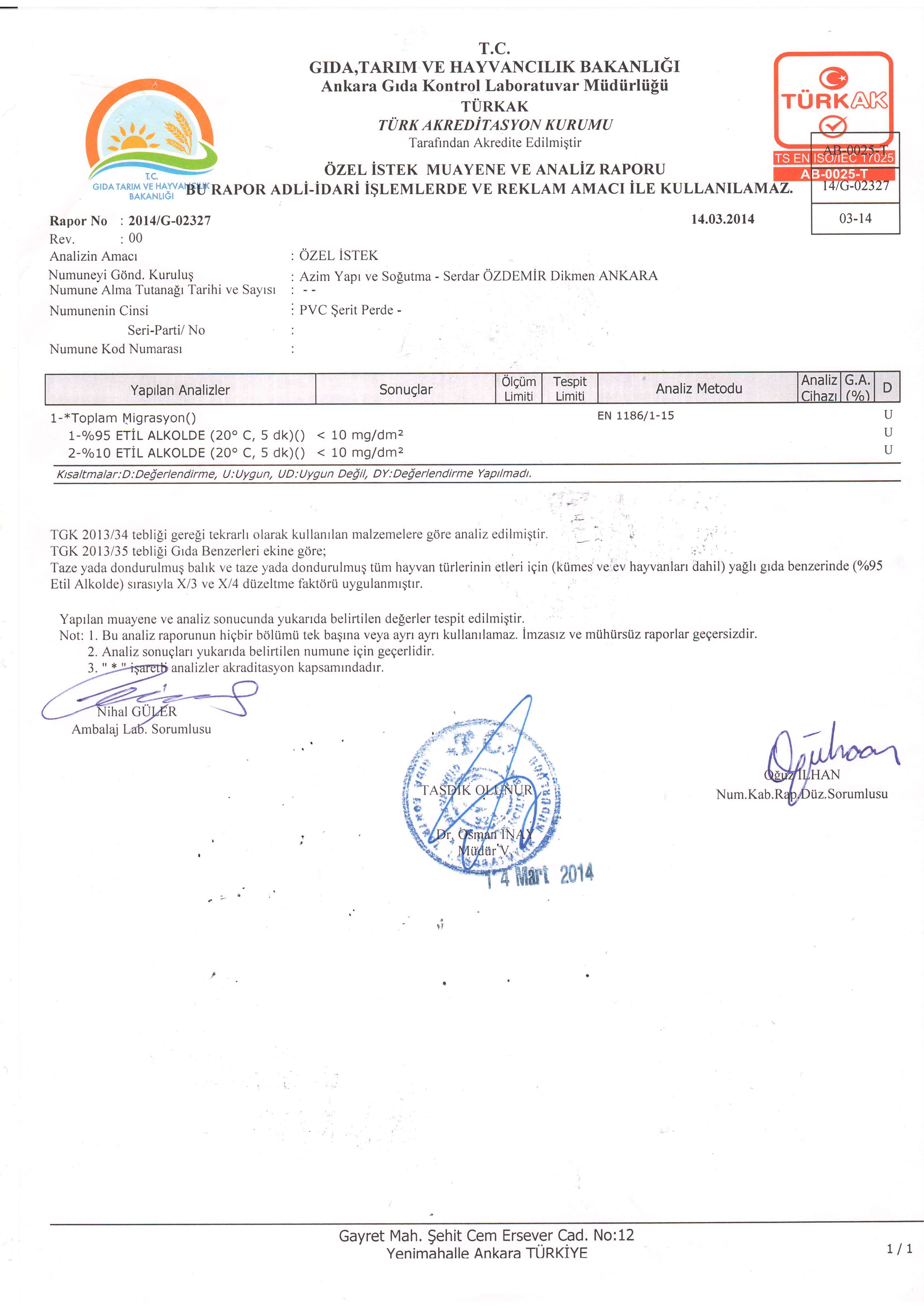 Gıda Uygunluk Belgesi 2